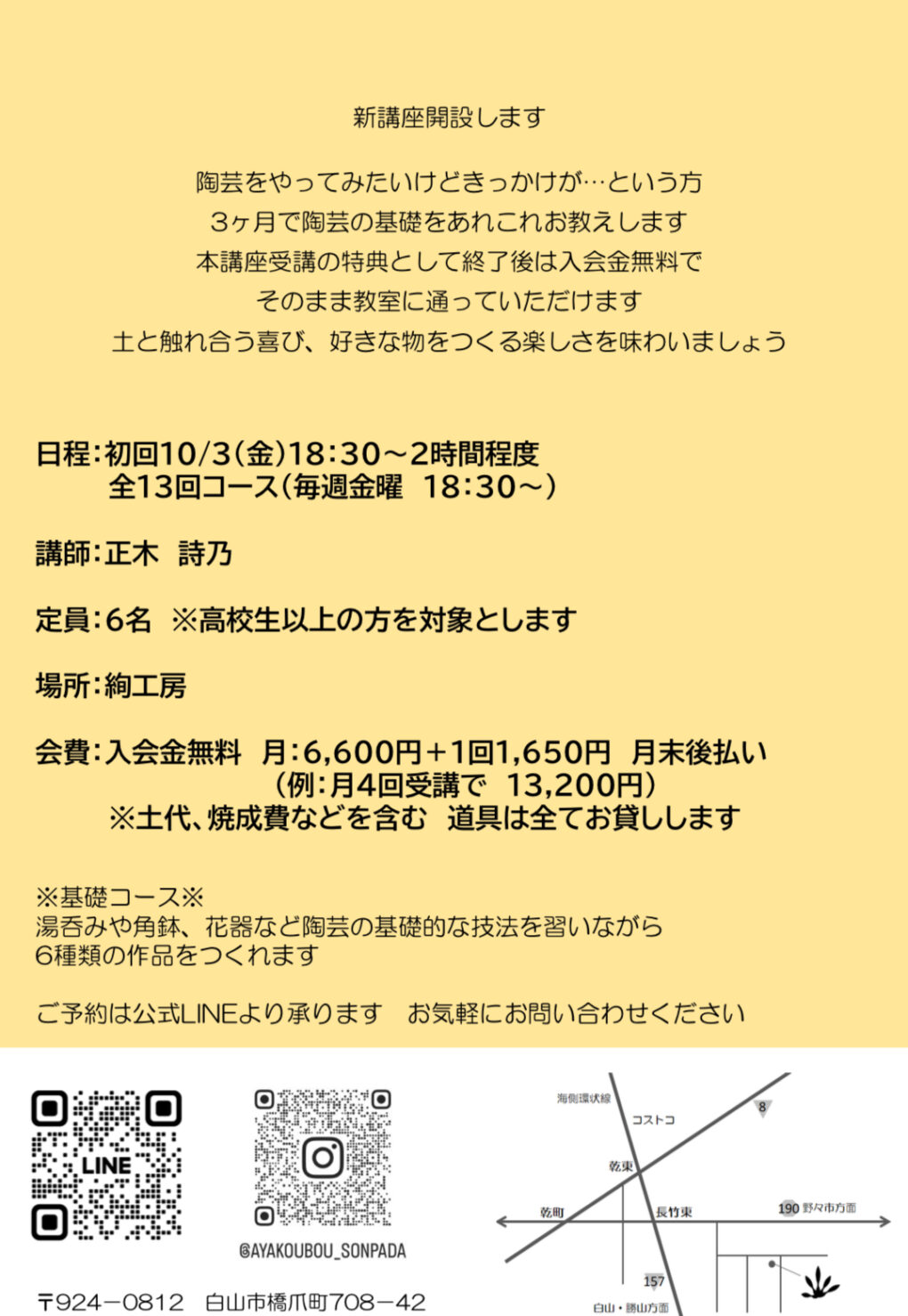 絢工房は石川県白山市の陶芸教室です